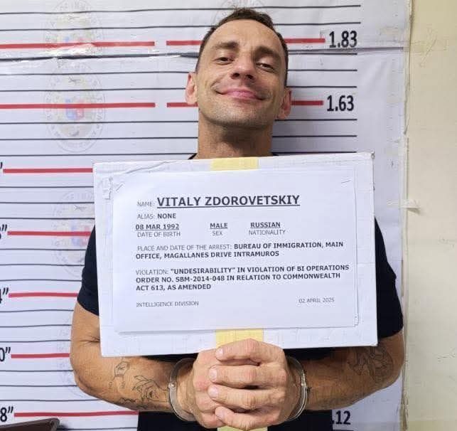 Vitaly Zdorovetskiy, 33, was arrested and detained at the BI facility in Camp Bagong Diwa after a controversial livestream went viral on April 1. In the video, he was seen grabbing a security guard’s hat, trying to take another guard’s gun, and threatening to rob a woman.